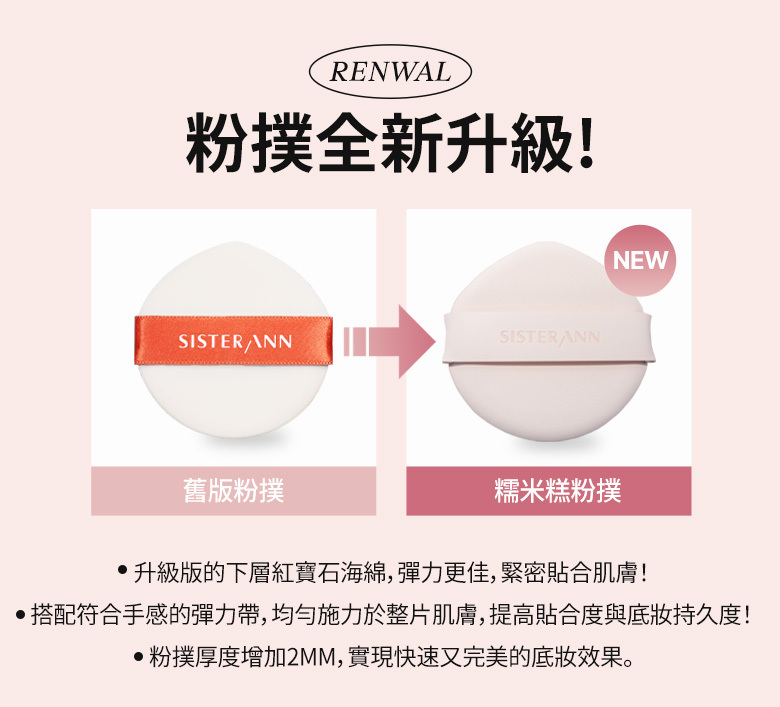 ✔粉撲厚度增加2mm,實現快速又完美的底妝效果。