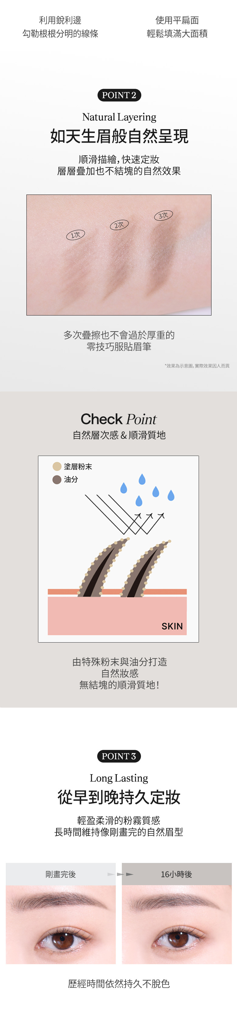 ✨ 眉粉+眉筆質地,顯色不結塊、不黏膩